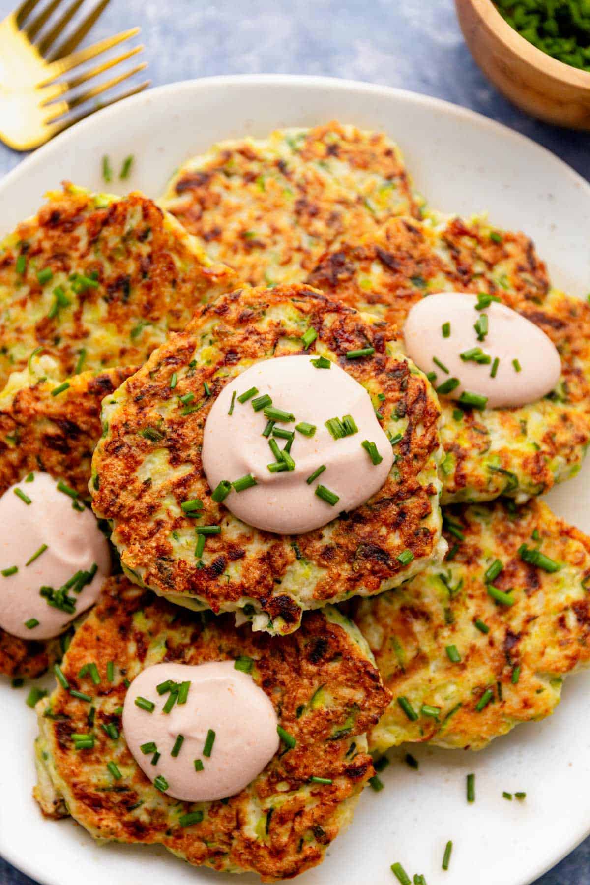 Super Tasty Protein Packed meal or snack idea with these High Protein Chicken Zucchini Fritters! Packed with ground chicken, cottage …